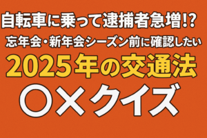 🚲自転車に乗って逮捕者急増!? 忘年会・新年会シーズン前に確認したい「2025年の交通法」○×クイズ 2025年も残すところあとわずか。街にはイルミネーションが灯り、忘年会や新年会の予定が詰まり始めた方も多いのではないで […]